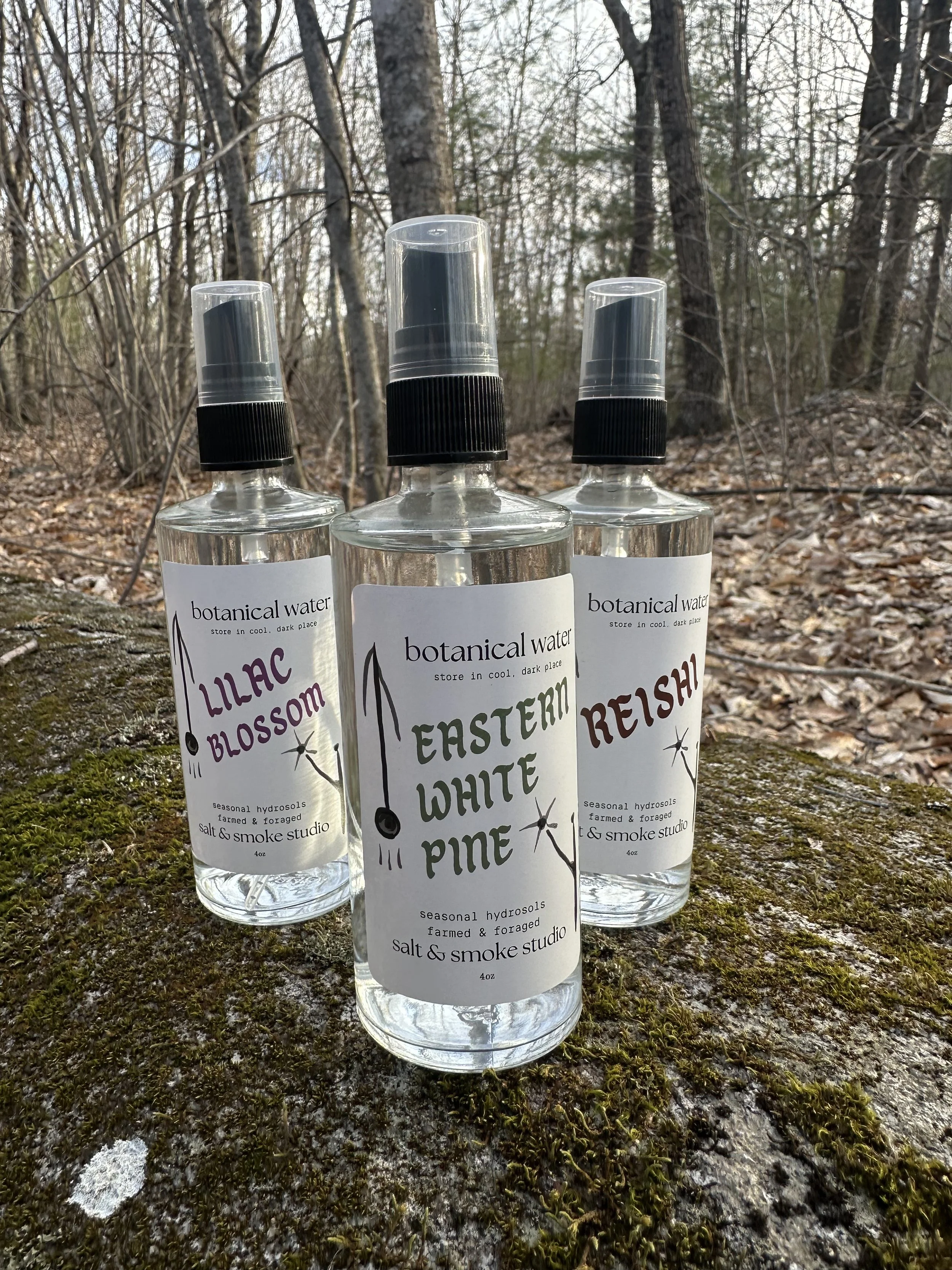 Hydrosols are steam-distilled plant and mushrooms. We use a small copper still to extract the aromatic essence of the plant or mushroom to create a water-based product with essential oils. This is actually the first step to making essential oils. Hydrosols are a more ecological way to incorporate essential oil aromatics into your day to day since they use less plant material plus they are already diluted to a safe level to put on your skin!